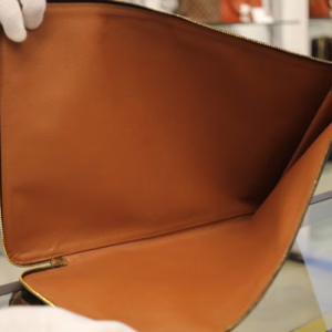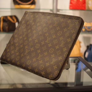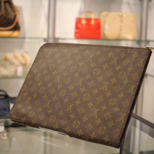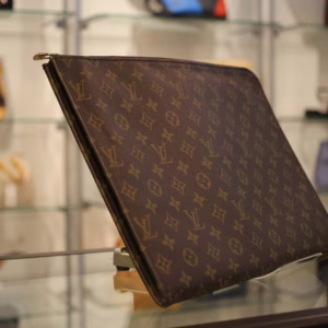 マチがなくスマートなフォルムで飽きのこないデザインのクラッチバッグ。開閉口が大きいので携帯電話や財布も取り出しやすく実用的です。また、利用しやすいサイズ感が嬉しく普段使いのマストアイテムになること請け合いです。付属品なし。