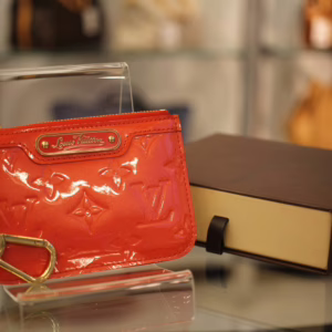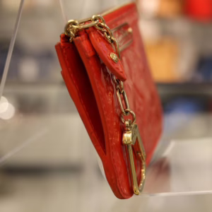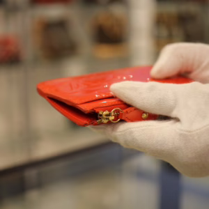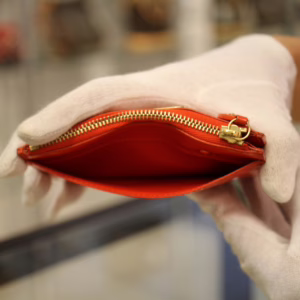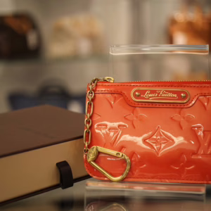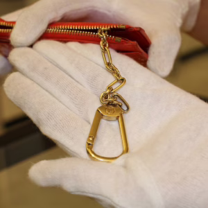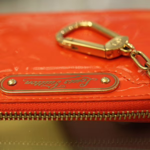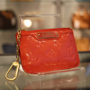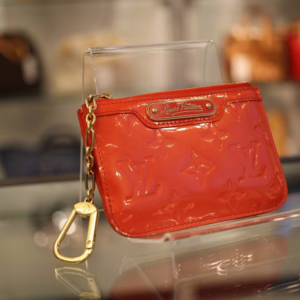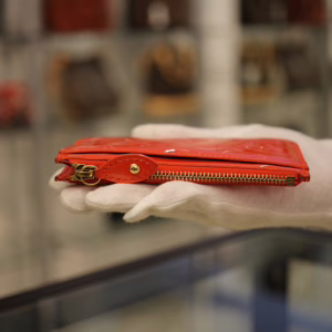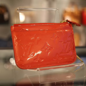 ヴェルニ特有の深みある光沢と金色のチェーンが高級感を醸し出すコインケース「ポシェット・クレ」のご紹介です。ジッパーを大きく広げられるので中まで見やすく出し入れしやすい小銭入れです。キーホルダーがあるのでどこに行くにも連れていけるデイリーユースに最適なデザインとなっております。刻印 CA1019。付属品 なし。大切に扱われた全体的に状態の良い綺麗な商品でございます。
