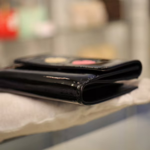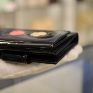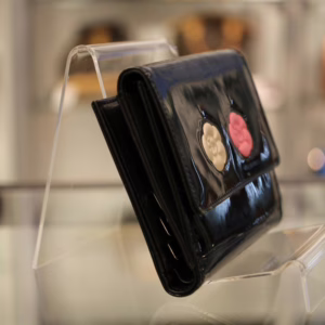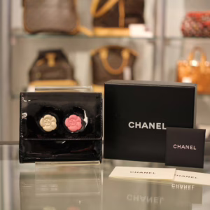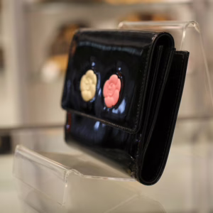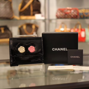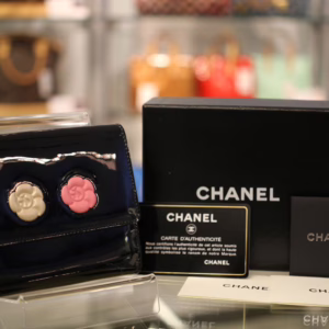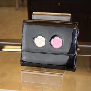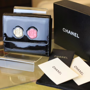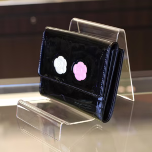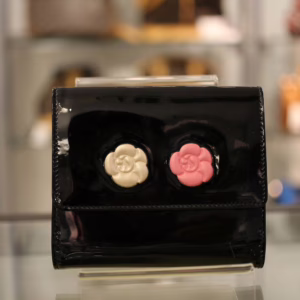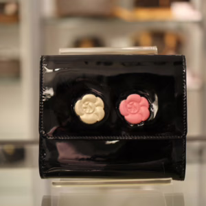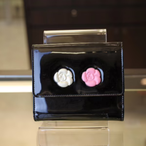 立体感ある白バラと赤バラがキュートな「カメリアマキュアージュ」エナメルWホック財布のご紹介です。上品かつゴージャスな装いのなかにもフェミニンなコーデを演出するデザインです。フォーマルだけでなく贅沢な普段使いができるのも孤高のシャネルならではの逸品です。刻印 3728563。付属品 ギャランティカード、シリアルシール。